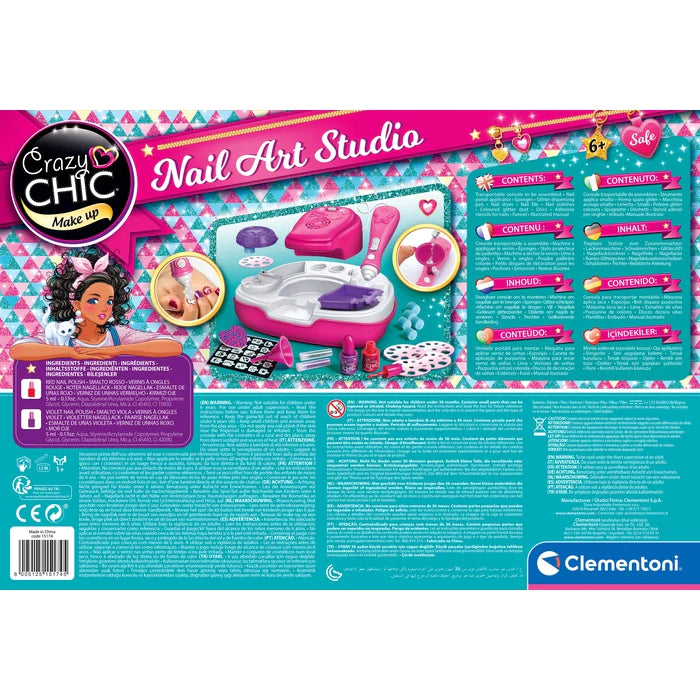 The kit contains the very latest collection of Crazy Chic nail varnishes, a practical decorating pen, lots of stencils and ultra-glamorous glitter!